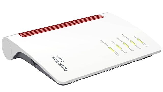 De Fritz!Box 6660 is AVM’s eerste router met wifi 6. Een DOCSIS3.1-kabelmodem (1 Gbit/s) is ingebouwd, maar deze router werkt ook met externe internetmodems. Die koppel je dan aan de eerste ethernetpoort, die je via het beheer als wan-poort configureert. Dat is trouwens een 2,5Gbit/s-poort; de vier andere ethernetpoorten op de achterkant zijn 1Gbit/s-aansluitingen.