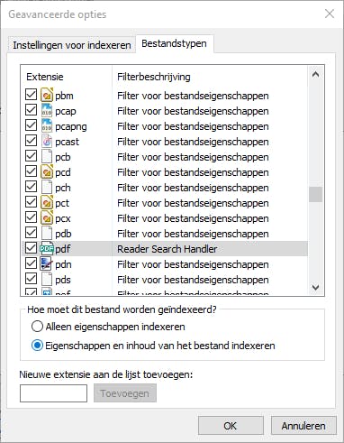 Standaard is in Windows een service actief die de bestandsnamen evenals de eigenschappen en de bestandsinhoud van sommige bestandstypes in een geïndexeerde lijst bewaart, waardoor zoekoperaties merkbaar sneller gebeuren. Druk op Windows-toets+R en voer services.msc uit om na te gaan of de service, met de naam Windows Search, wel actief is. Je kunt zelf bepalen welke schijflocaties wel en niet worden geïndexeerd. Open hiervoor het tabblad Zoeken in Verkenner en klik op Geavanceerde opties / Geïndexeerde locaties wijzigen. Druk op de knop Wijzigen, door het kleine pijltje naast een stationsletter aan te klikken blader je door de diverse mappen en kun je bij de gewenste items een vinkje plaatsen. Bevestig met OK. Via de knop Geavanceerd kun je op het tabblad Bestandstypen tevens bepalen of Windows alleen de bestandsnamen en -eigenschappen ofwel ook de inhoud moet indexeren. Dat laatste heeft natuurlijk alleen maar zin bij ‘leesbare’ bestanden.