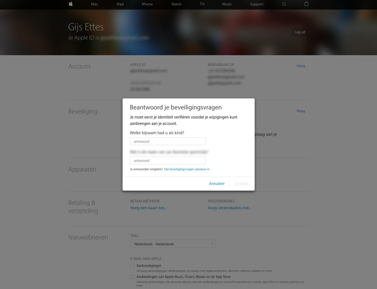 Om in te loggen of accountinformatie te wijzigen, is het soms nodig om beveiligingsvragen te beantwoorden. Als het goed is, heb je die gekozen toen je het desbetreffende account aanmaakte. Bedrijven als Microsoft, Apple en Google gebruiken beveiligingsvragen om te verifiëren of jij ook wel echt de rechtmatige eigenaar van een account bent. Het is belangrijk om vragen en antwoorden te kiezen die je kunt onthouden en die niet makkelijk door anderen zijn te raden. Kies liever niet voor vragen met betrekking tot je geboorteplaats, huisdier of partner. Dit soort informatie kan een cybercrimineel relatief eenvoudig achterhalen. Anderzijds is het slim om vragen te kiezen die familieleden wél kunnen beantwoorden. Bijvoorbeeld: “Wat is de naam van de straat waar je opgroeide?” Mocht er iets met je gebeuren, dan kan een familielid toegang krijgen tot je account en je gegevens veiligstellen. Zorg ervoor dat vragen ondubbelzinnig beantwoord kunnen worden, zodat je bij geheugenverlies niet het risico loopt dat je buitengesloten wordt van je account.