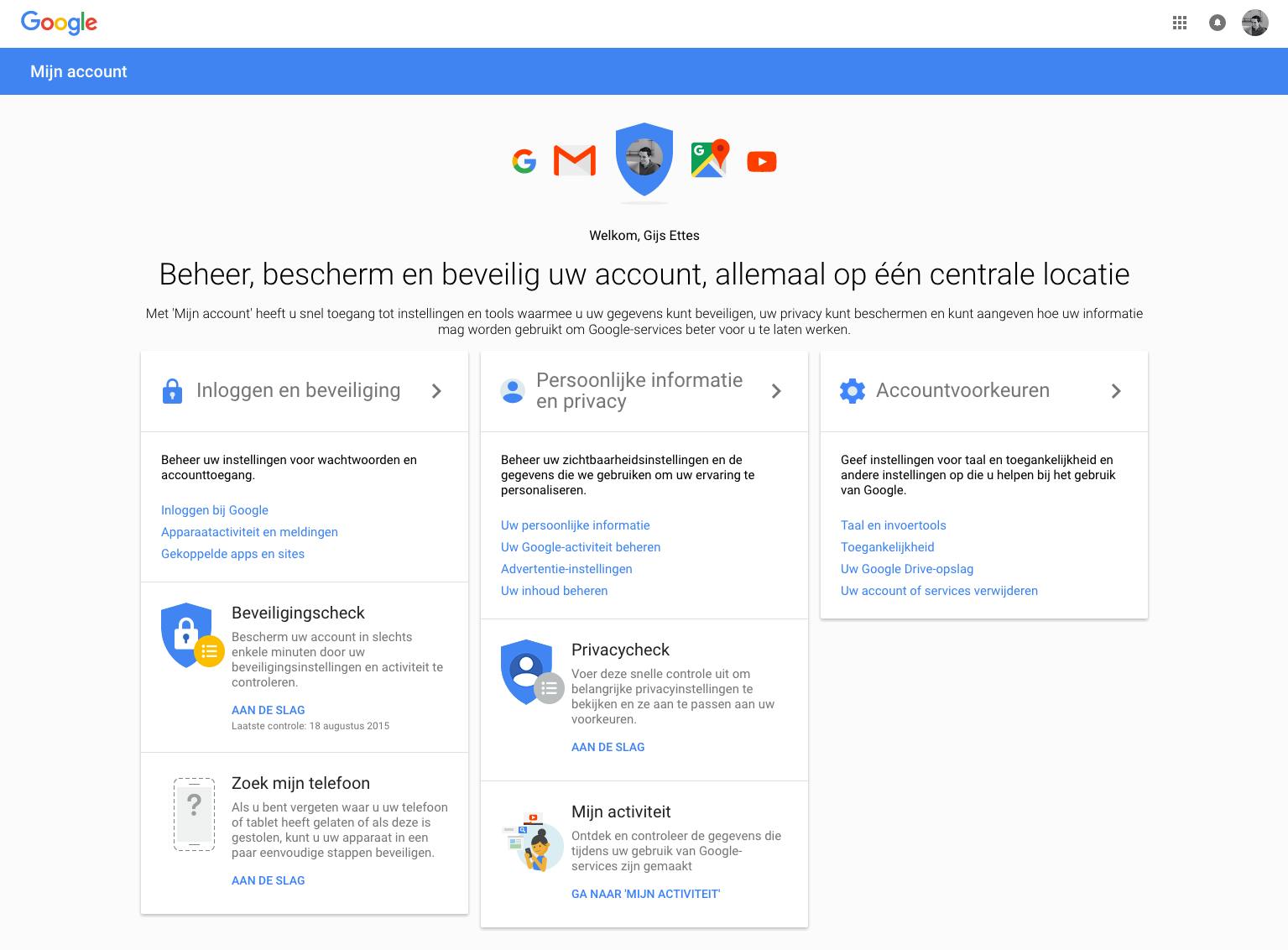 Google laat je je beveiliging en privacy-instellingen controleren