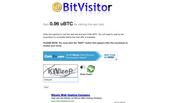 Met Bitvisitor word je niet echt rijk, 0,96 uBTC is een fractie van een cent.