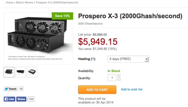Om bitcoins te delven, heb je krachtige hardware nodig. Deze ASIC is erg goed, maar daar betaal je dan ook een stevige prijs voor.