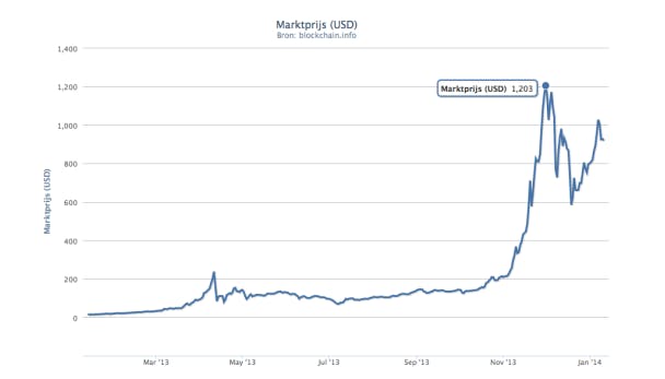 Alle media-aandacht rond bitcoin doet de digitale valuta goed. Steeds meer bedrijven omarmen bitcoin en dit doet de koers alleen maar stijgen. Sommige experts verwachten zelfs dat de waarde van een bitcoin wel eens kan stijgen tot duizenden euro's. Een nadeel is echter dat de koers hevig aan fluctuatie onderhevig is. Toen in december de exchange BTCChina stopte met het aannemen van Chinese yuans, daalde de waarde van 1 BTC van 1200 dollar naar 500 dollar in een paar dagen.