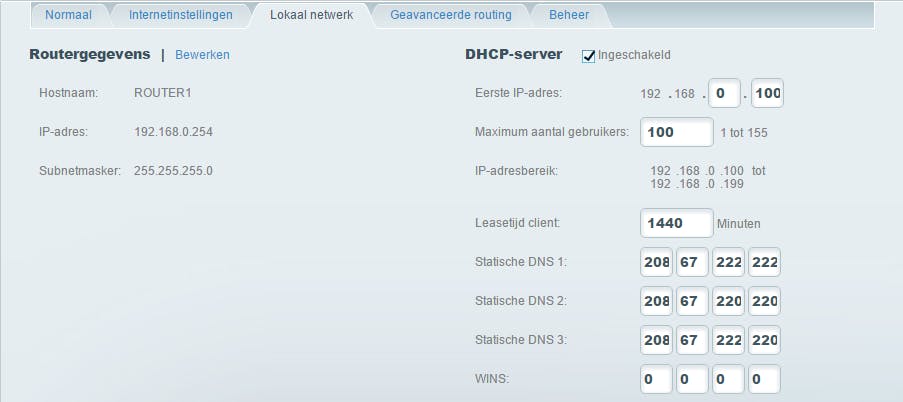 Zoals gezegd is het voor computers uit het buitenste subnet niet zomaar mogelijk om toestellen uit het binnenste subnet te benaderen, wat maakt dat het buitenste subnet bijvoorbeeld geschikt is voor gebruik door gasten (via wifi) of voor gebruikers die graag experimenteren. Je werkt zelf dan (als je niet aan het knutselen bent) uitsluitend op toestellen in het binnenste subnet. Als je dat verkiest, kun je bijvoorbeeld ook verschillende dns-servers instellen op beide routers. Op de tweede router gebruik je dan de standaard dns-servers van je provider of die van Google (8.8.8.8 en 8.8.4.4), terwijl je op de eerste router eventueel dns-servers met ‘geïntegreerde webfiltering’ instelt, zoals die van OpenDNS (208.67.220.220 en 208.67.222.222). Meer uitleg over deze dns-filtering vind je hier.