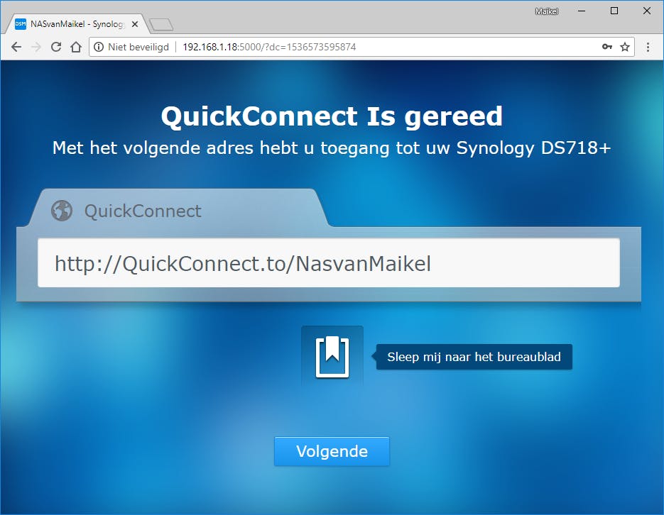 In de volgende stap vraagt Synology om een zogeheten QuickConnect ID te creëren. Deze functie heeft vooral nut wanneer je buitenshuis verbinding met je nas wilt maken. Handig wanneer je bijvoorbeeld met je smartphone onderweg een familiefoto aan een reisgenoot wilt laten zien of wanneer je een thuisdocument nodig hebt op het werk. Om buitenshuis toegang tot je nas te krijgen, dien je normaal gesproken op routerniveau een uitzondering in te stellen. Dat kan via het openzetten van poorten, maar je kunt als alternatief ook QuickConnect ID activeren. Via laatstgenoemde optie krijg je altijd en overal toegang tot jouw nas door naar een aangepast webadres te surfen. Vul een e-mailadres en wachtwoord in. Bij QuickConnect ID typ je een unieke naam die je voor het webadres wilt gebruiken. Via Volgende ga je akkoord met de voorwaarden. Het webadres waarmee je jouw nas kunt bereiken verschijnt nu in beeld. Dit adres begint altijd met http://QuickConnect.to gevolgd door de naam die je bij het aanmaken van de QuickConnect ID hebt ingevuld. Klik op Volgende. Geef aan dat je de netwerklocatie van je nas wilt delen en klik op Start om het hoofdvenster van DSM te openen. Open tot slot je e-mailbox om het zojuist aangemaakte account te activeren.