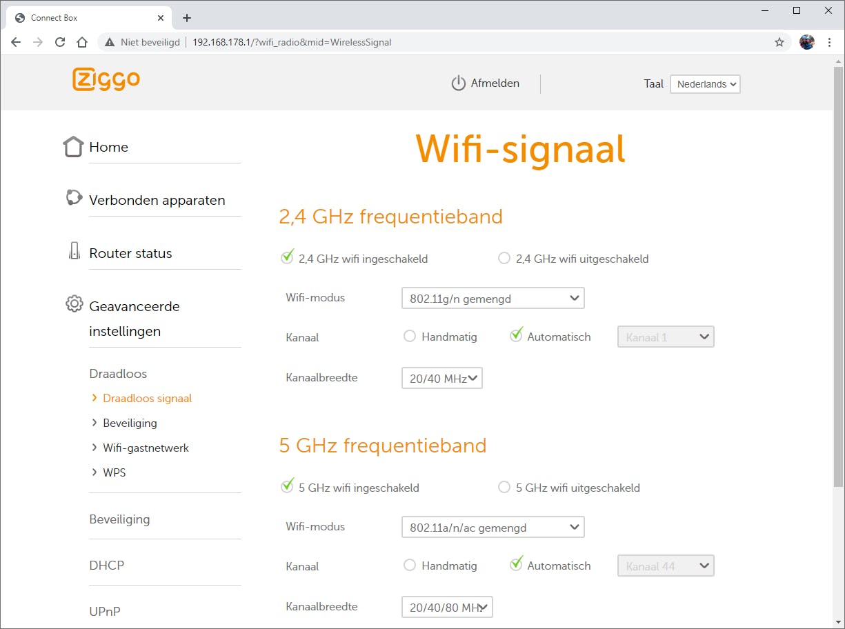 De aanwezige opties van het bedieningspaneel hangen af van de gebruikte netwerkapparatuur. Vaak vind je de draadloze opties bij de geavanceerde instellingen terug. Moderne routers zenden het wifi-signaal uit op twee frequentiebanden, namelijk 2,4 en 5 GHz. Controleer of beide frequentiebanden op jouw router actief zijn. Verder is het voor de dataverwerking gunstig wanneer er een kanaalbreedte van 20/40 MHz of 20/40/80 MHz is ingesteld. Laat de router bij voorkeur automatisch naar een (rustig) kanaal zoeken. Je kunt het kanaalnummer ook handmatig instellen en vervolgens controleren of een wijziging verbetering van het draadloze signaal oplevert. Staan alle wifi-instellingen goed en valt de wifi-dekking evengoed tegen? In dat geval loont het de moeite om een wifi-versterker aan te schaffen.