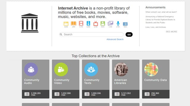 The Internet Archive herbergt meer dan 200.000 softwaretitels, ook van iconische systemen als Atari en Commodore; bovendien kun je door een emulatiesysteem deze games effectief spelen. Ook 20 miljoen boeken en teksten zijn gearchiveerd en 4,5 miljoen audio-opnames, waaronder 180.000 live-concerten. In samenwerking met derden is men zelfs bezig met archiveren van oude lp’s.
