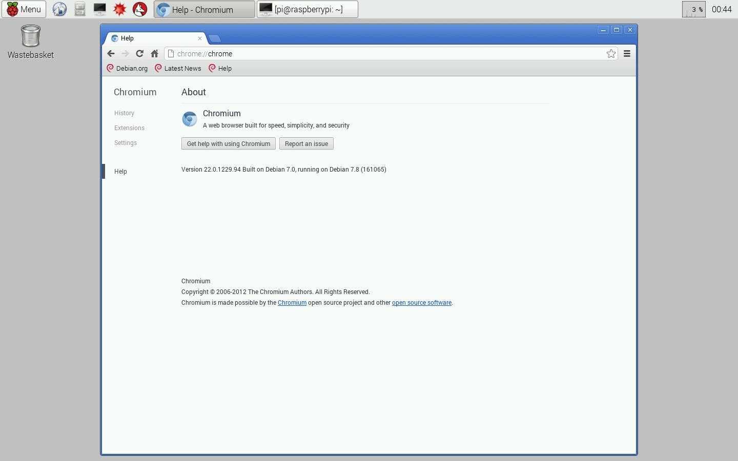 Het Pi-besturingssysteem Raspbian is standaard voorzien van een webbrowser, maar helaas niet van een heel goede. Gelukkig is het mogelijk om zelf een andere browser te installeren en dat is niet eens zo ingewikkeld. Om dat te doen, dien je de Pi aangesloten te hebben op de televisie (om te kunnen zien wat je doet) en in ieder geval een toetsenbord aangesloten te hebben om commando’s in te kunnen voeren. Zorg ervoor dat Raspbian geïnstalleerd is op de Pi (dit kun je doen met behulp van NOOBS). Wanneer de Pi is gestart, start je de Terminal vanaf het bureaublad of vanuit het menu linksboven. Voer nu het volgende commando in: