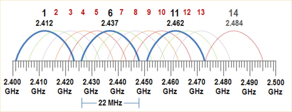 Een zwak punt voor zowel 802.11b als 802.11g bleef echter de 2,4GHz-band. Immers, ook andere toestellen als magnetrons, bluetooth-apparaten en draadloze telefoons opereren binnen die frequentie en bovendien is het aantal te gebruiken kanalen beperkt. De 11 kanalen overlappen elkaar gedeeltelijk. Om dit te vermijden, stel je je draadloze router of toegangspunt het best in op een kanaal in dat minstens vijf nummers is verwijderd van dat van naburige netwerken. In de praktijk komt dat neer op een keuze tussen kanalen 1, 6 en 11.