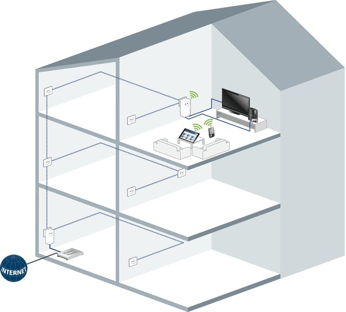 Dankzij het ingebouwde wifi-accesspoint kun je op bijvoorbeeld je zolder draadloos internetten.