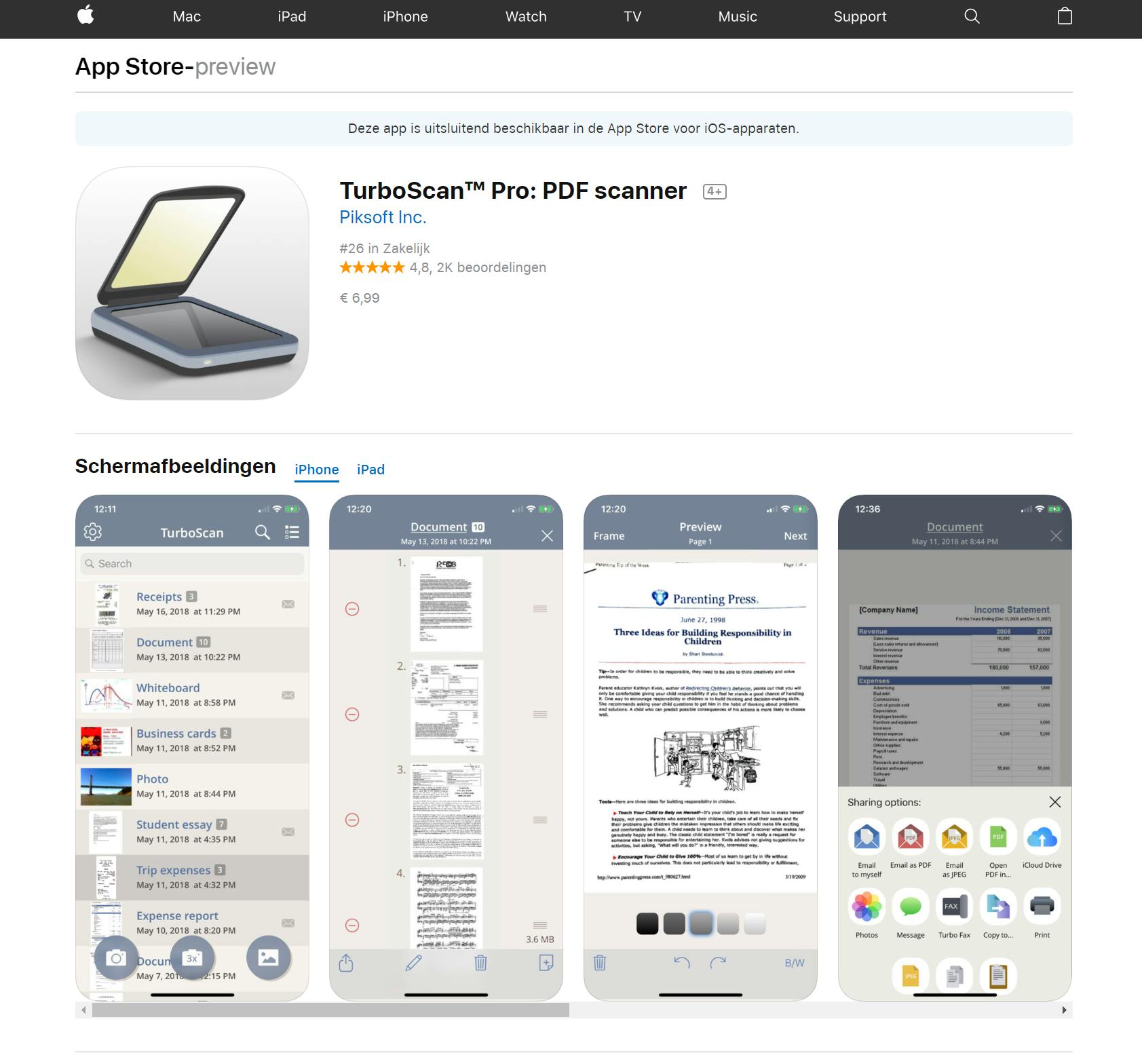 Een digitale boekhouding betekent uiteraard ook dat je al je bonnetjes moet digitaliseren. Bij het pakket dat wij gebruiken in deze cursus is een app aanwezig die de bonnetjes scant, maar als jij een ander pakket gebruikt dat dat niet heeft, dan raden we je Turboscan aan (zowel in de Google Play store als Apple App Store te vinden). Met deze app scan je eenvoudig je bonnetjes, waarna deze (kunnen) worden opgeslagen in de cloud. Kleine tip: leer jezelf aan om bonnetjes direct in te scannen als je ze krijgt. Dat staat misschien een beetje gek in de winkel, maar het zorgt er wel voor dat je écht nooit meer een bonnetje kwijt bent. Bovendien wordt het bijhouden van je administratie een eitje, omdat je niet meer aan het einde van het kwartaal al je bonnetjes nog moet inscannen. De app kost met z’n 7 euro een flinke duit, maar dat is het dubbel en dwars waard.