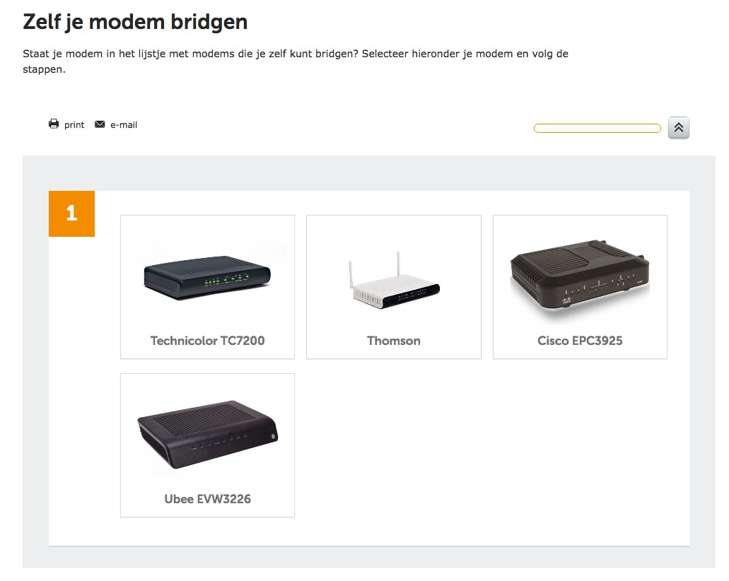 Sommige routers hebben echter een bridgemodus. De beste manier om twee routers achter elkaar te zetten, is om de eerste router (die van je internetprovider) in deze modus te zetten. In bridgemodus worden beide netwerken van de routers aan elkaar gekoppeld en fungeert het apparaat van je internetprovider enkel als modem. Met bridgemodus is het nodig om alle apparaten dan aan je tweede router te koppelen, omdat de eerste router in bridgemodus geen IP-adressen meer zal uitdelen. Bij bijvoorbeeld modem/routers van Ziggo wordt in bridgemodus het wifi-netwerk uitgeschakeld, deelt de router geen IP-adressen meer uit, wordt NAT uitgeschakeld, wordt de firewall uitgezet en worden LAN-poorten 2 tot en met 4 uitgeschakeld. Je kunt dan dus eenvoudig je eigen router eraan hangen. Instructies hoe je voor Ziggo bridgemodus inschakelt, vind je hier. Mogelijk bieden ook andere internetproviders een dergelijke bridgemodus.