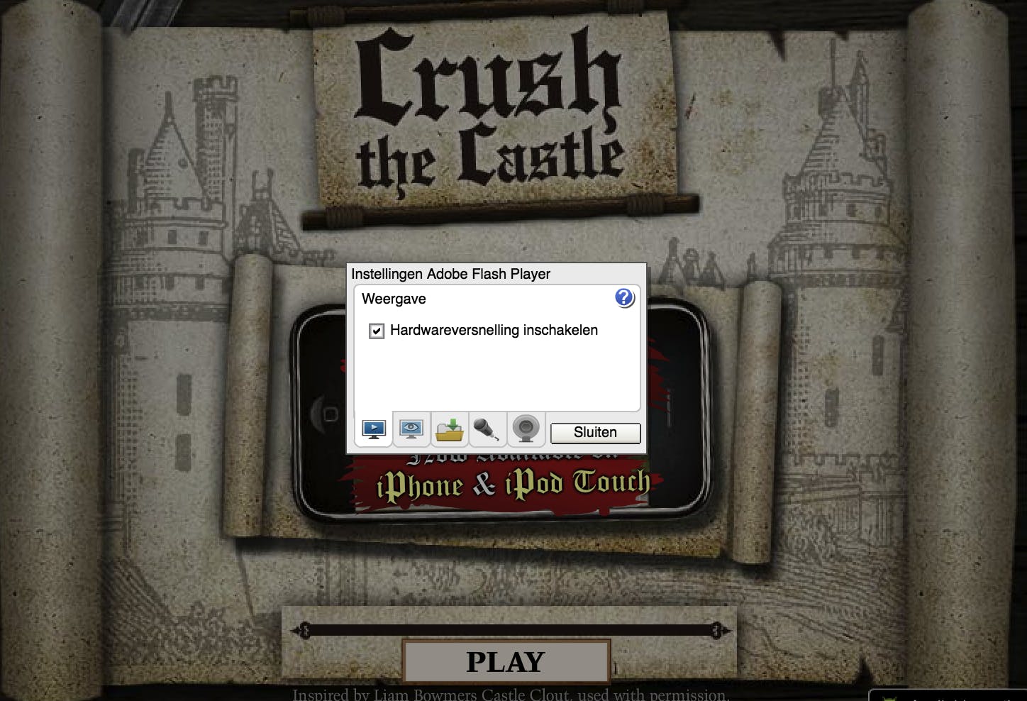 Een hardwareversnelling dwingt de pc zijn hardware te gebruiken om sneller een functie uit te voeren. Dat kan een beter resultaat geven dan via de software die de cpu aanspreekt. Test deze optie, aangevinkt en uitgeschakeld, om uit te zoeken wat de beste resultaten voor jouw systeem oplevert. Start na een wijziging wel de pc opnieuw op! Je kunt hardwareversnelling instellen door met de rechtermuisknop op de flash-game te klikken en door Instellingen te kiezen. Het is de enige optie op het eerste tabblad.
