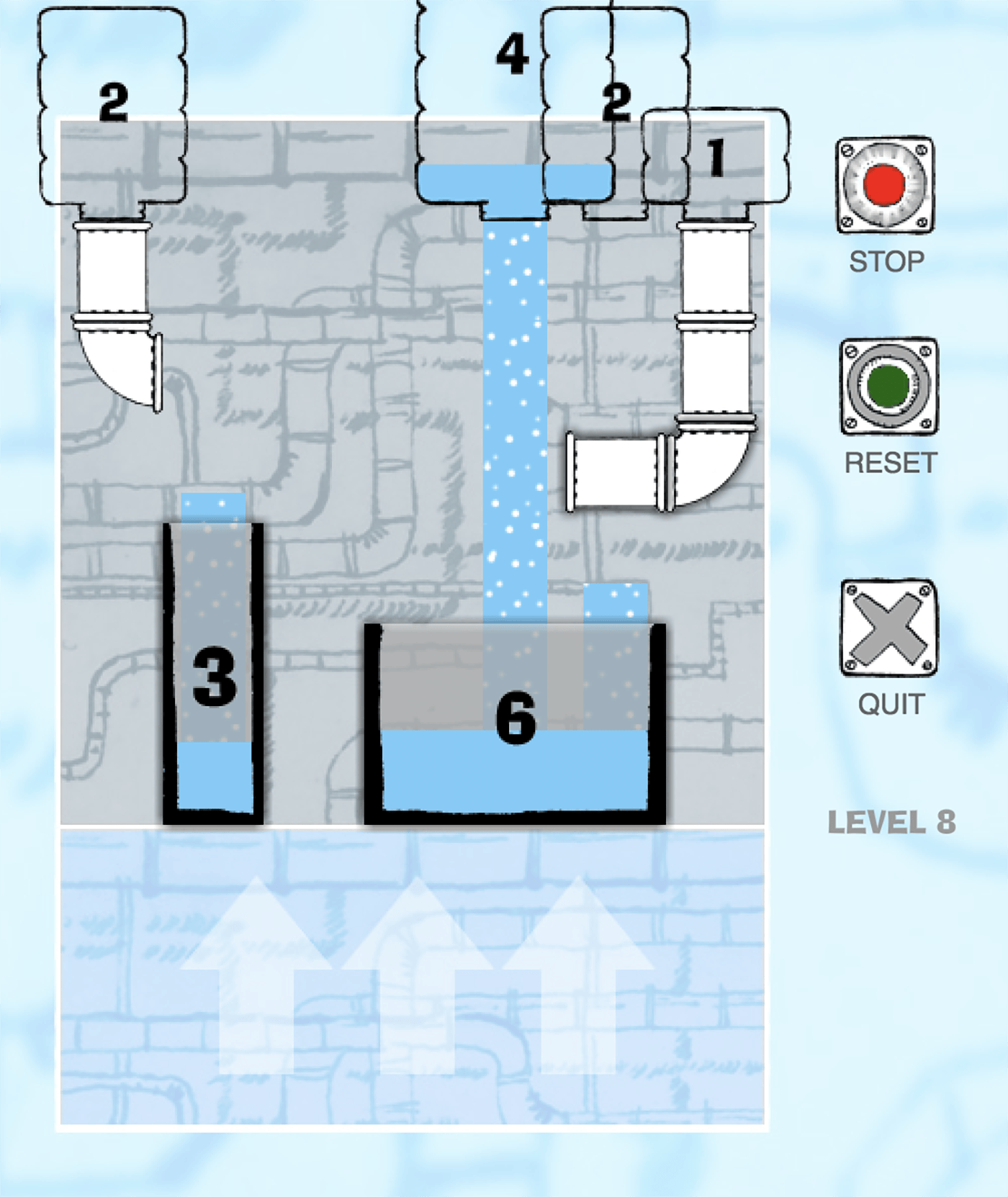 Sleep met de muis de buizen, de bochten en de vaten in de juiste volgorde en laat daarna de watertanks leeglopen in de hoop dat de vaten netjes vollopen zonder een druppel te verspillen. Iedere watertank en ieder vat in Liquide Measure heeft een getal dat de capaciteit aangeeft. De game heeft ondertussen twee sequels en nog eens drie uitbreidingen, wat maakt dat er zes verwante spellen zijn. Liquid Measure is een flink staaltje puzzelmechanica. Bovendien zijn het telkens erg korte spelsituaties, ideaal als tussendoortje dus.