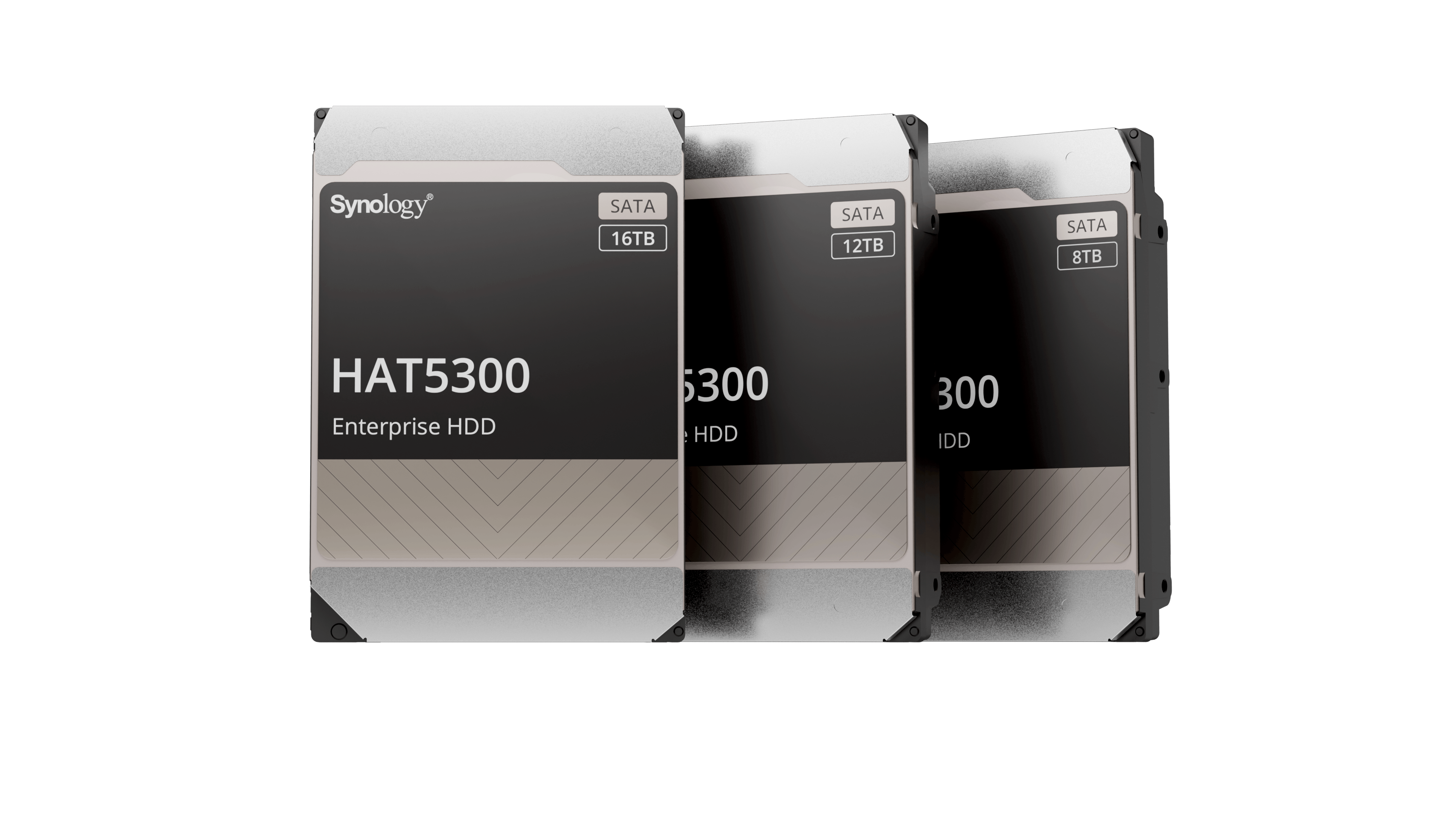 Behalve ssd’s zijn er sinds kort ook harde schijven bij Synology. De schijven zijn ontwikkeld samen met Toshiba; SATA-schijven van 8, 12 en 16 TB. Synology kiest voor een levensduur van 2,5 miljoen uur of 500 TB per jaar. De firmware is geoptimaliseerd voor gebruik in een Synology-NAS en het Synology DSM-besturingssysteem voorziet de Synology-schijven automatisch van de nieuwste firmware.