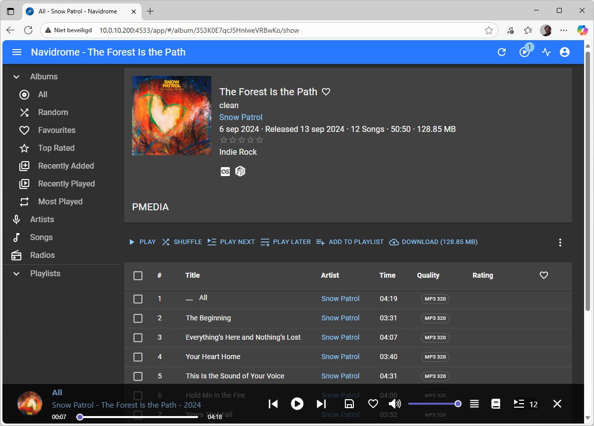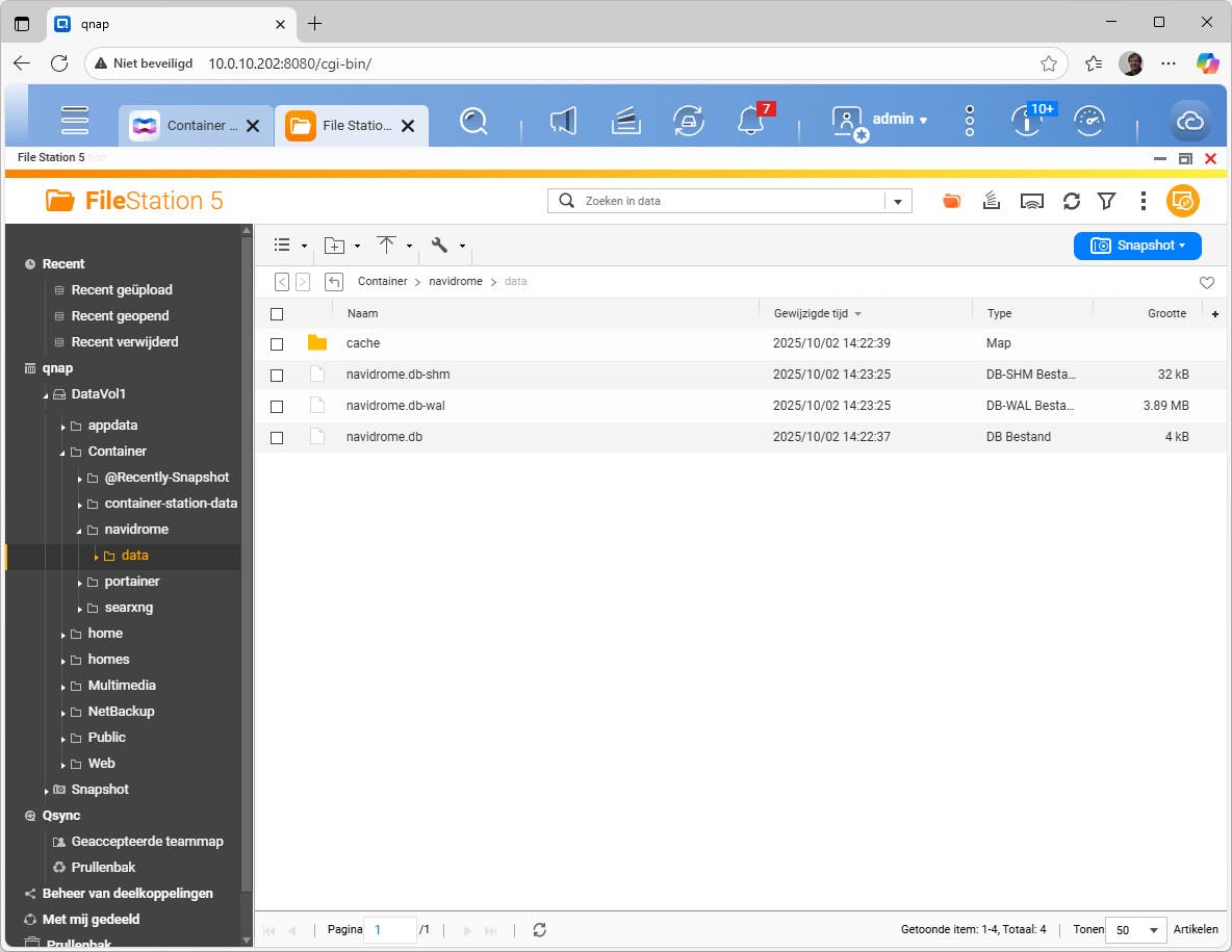 Het mooie van Docker op een NAS is dat je een container toegang kunt geven tot bestanden op die NAS, zoals foto's, video's, documenten en back-ups. Je koppelt daarvoor gewoon de gewenste gedeelde mappen of submappen. Op die manier kun je bijvoorbeeld de muziekspeler NaviDrome direct toegang tot de muziek op de NAS geven. De muziek kun je daarna netjes georganiseerd bekijken en afspelen via de vlotte webinterface. Het werkt ook samen met verschillende bekende apps. Ook bijvoorbeeld voor video's zijn goede toepassingen beschikbaar, zoals Plex en Jellyfin. Of probeer eens een toepassing als Immich of Photoprism voor je fotobibliotheek.