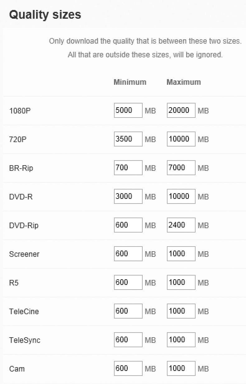CouchPotato zoekt niet zomaar naar de film die u wilt downloaden, maar kan ook letten op de kwaliteit ervan. Als u een hd-tv hebt staan, zult u namelijk geen genoegen nemen met een dvd-rip van een film, maar wilt u een 720p- of 1080p-versie. Op het tabblad Quality kunt u kwaliteitsprofielen aanmaken. Die profielen worden vervolgens opgesomd in het lijstje naast het zoekveld rechtsboven in het scherm. Standaard kiest CouchPotato voor 720p, maar op het tabblad Quality ziet u welke instellingen er nog meer zijn. De gangbaarste kwaliteitsversies zijn er al – u maakt dus geen nieuwe aan. Voor elk kwaliteitsprofiel kunt u ook nog eens aangeven hoe groot de download moet zijn. Aan een 1080p-rip van 3 GB hebt u niets. Daarom staan ook hier al de gangbare bestandsgroottes ingevuld.