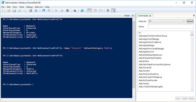Er zijn meerdere methoden om een gekozen profiel te wijzigen. De snelste is via PowerShell. Start PowerShell op als Administrator en voer het commando