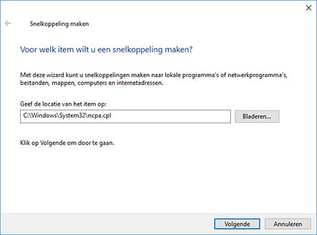 Voor een snel overzicht van alle netwerkverbindingen (actief, niet-actief, in- of uitgeschakeld), gewoon zoals het voorheen was in Windows 7 en eerder, open je het startmenu en typ je de zoekopdracht ncpa.cpl in gevolgd door Enter. Meteen opent het oude vertrouwde overzicht met Netwerkverbindingen. Heb je dit graag als snelkoppeling op het bureaublad, klik dan met de rechtermuisknop op het bureaublad en kies Nieuw / Snelkoppeling en voer als opdracht in C:\Windows\System32\ncpa.cpl. Bevestig met OK.
