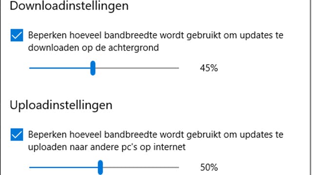 Windows heeft er sinds de FCU (Fall Creators Update) een extra functie bij om de snelheid en de bandbreedte te bepalen waarmee updates voor je systeem en de geïnstalleerde apps worden binnengehaald, of naar andere toestellen binnen je eigen netwerk worden gedistribueerd. Daartoe open je de Windows Instellingen en kies je achtereenvolgens Bijwerken & beveiliging / Windows Update / Geavanceerde opties / Delivery Optimization.