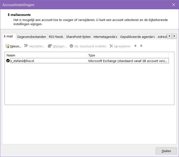 Als je moeite hebt met het selecteren van de juiste POP- en IMAP-gegevens dan vind je die op de Microsoft-site. Vaak zal Outlook vanzelf de juiste gegevens selecteren afhankelijk van het emailadres dat je probeert toe te voegen maar mocht dat niet het geval zijn dan kan je het dus even controleren.