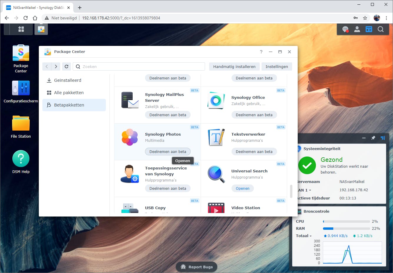 Open Package Center en klik onder Synology Photos op Installeren of Deelnemen aan beta. De fotobeheerder vereist ook een aantal hulpprogramma’s. Ga met Ja akkoord met de installatie van deze tooltjes. Er verschijnt een vraag of je voor iedere gebruiker een aparte fotoruimte op de NAS wilt instellen. Dat is verstandig om te doen. Bevestig met Volgende / Voltooid.