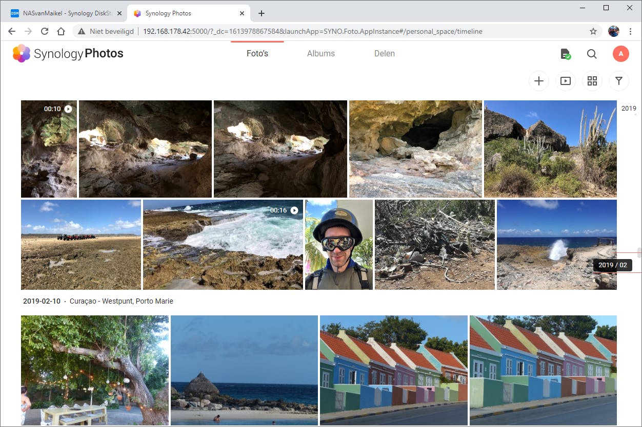 Synology Photos is bij uitstek geschikt om herinneringen op te halen. Klik in het overzicht een foto of filmpje aan om die in groot formaat te tonen. Gebruik de pijltjesknoppen om naar de volgende of vorige foto te gaan. Je kunt ook extra details over het beeld opvragen. Klik maar eens rechtsboven op het informatiepictogram.