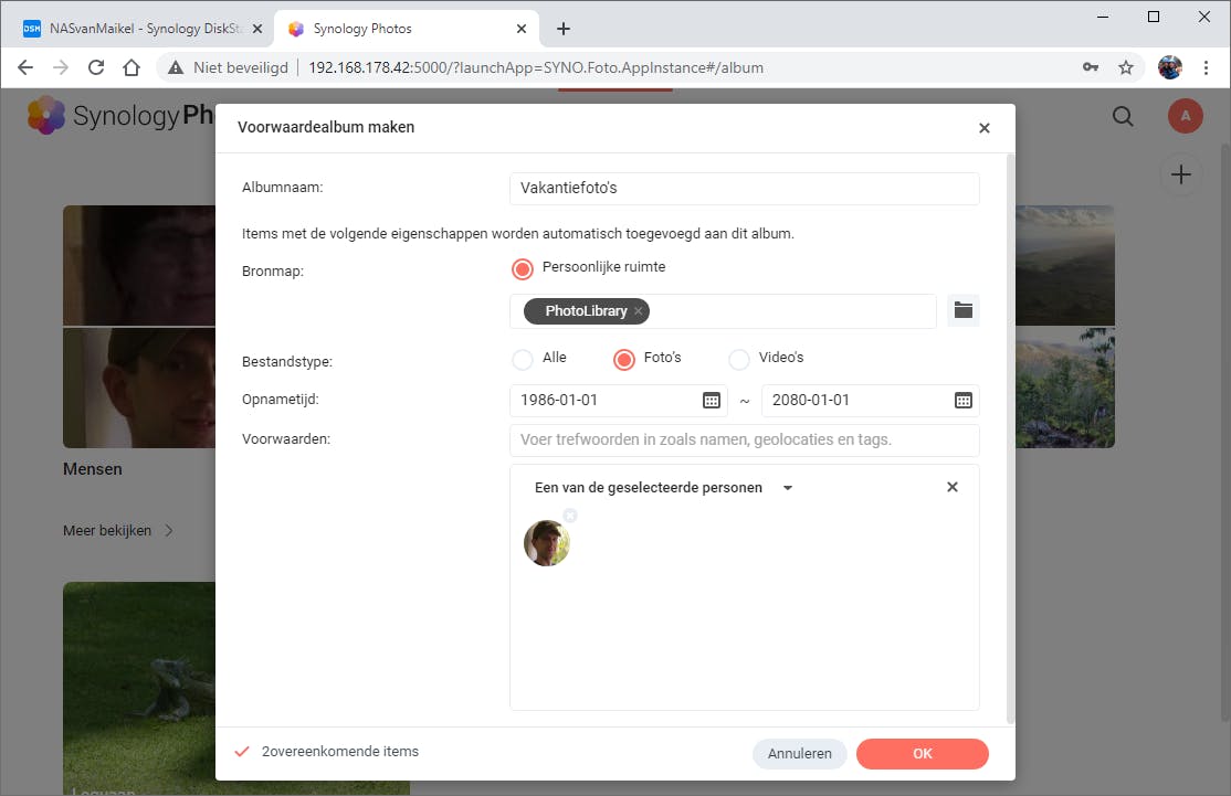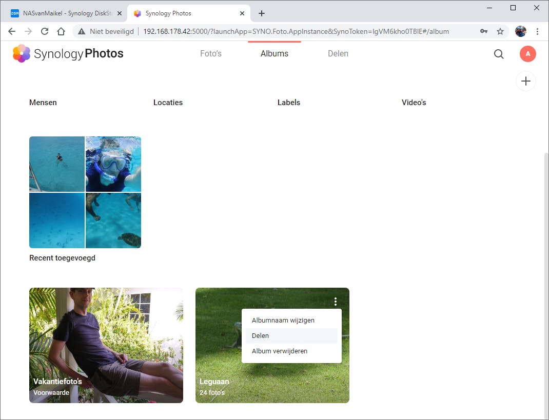 Synology Photos biedt allerlei opties om jouw fotoverzameling te beheren. Zo groepeert de app automatisch foto’s en video’s in virtuele mappen. Onderhuids blijven de bestanden op dezelfde plek staan, zodat er geen sprake is van duplicatie. Klik bovenaan op Albums en bekijk welke virtuele albums de fotobeheerder voor je heeft klaarstaan.