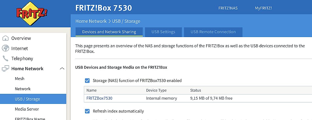De NAS-optie in de FRITZ!Box vind je in de kolom links onder Home Network en USB / Storage. Een item lager tref je de Media Server aan. Het zijn – zo bleek ook uit het helemaal in het begin gelinkte onderzoek – dat het vaak juist deze extraatjes zijn waar de grootste veiligheidslekken in zitten.