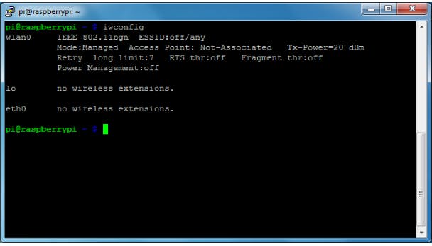 Zorg ervoor dat je usb-wifi-adapter compatibel is met de Raspberry Pi en in het bijzonder de Linux-distributie die je gebruikt. Koop je de adapter in een gespecialiseerde Pi-shop, dan zit je meestal goed. We gaan ervan uit dat je het besturingssysteem Raspbian op je Pi geïnstalleerd hebt (zie ook de cursus). Sluit de adapter via usb aan, schakel je Pi in en geef dan de opdracht iwconfig. Zie je in de uitvoer informatie over je adapter staan, bijvoorbeeld achter de naam wlan0, dan wordt de adapter door Raspbian herkend.