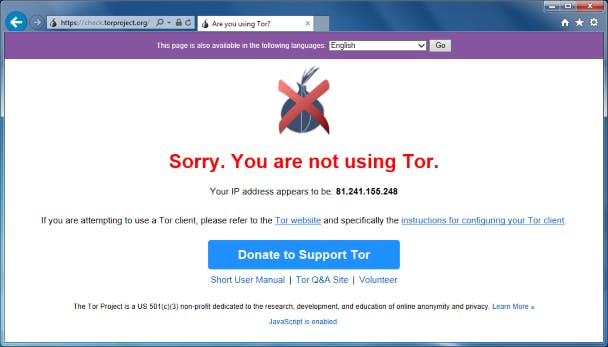 Als je nu op je computer, smartphone of tablet verbindt met het SSID van je Raspberry Pi, surf je automatisch via het Tor-netwerk. Om te controleren of je echt via Tor surft, bezoek je in je browser deze webpagina. Indien de Tor-verbinding niet werkt, krijg je een ui met een rood kruis erover te zien en de melding dat je geen gebruikmaakt van Tor. Kijk dan met de opdracht less /var/log/tor/notices.log of er in het logbestand informatie staat die je helpt om het probleem te lokaliseren. Druk op q om het programma 'less' te verlaten.