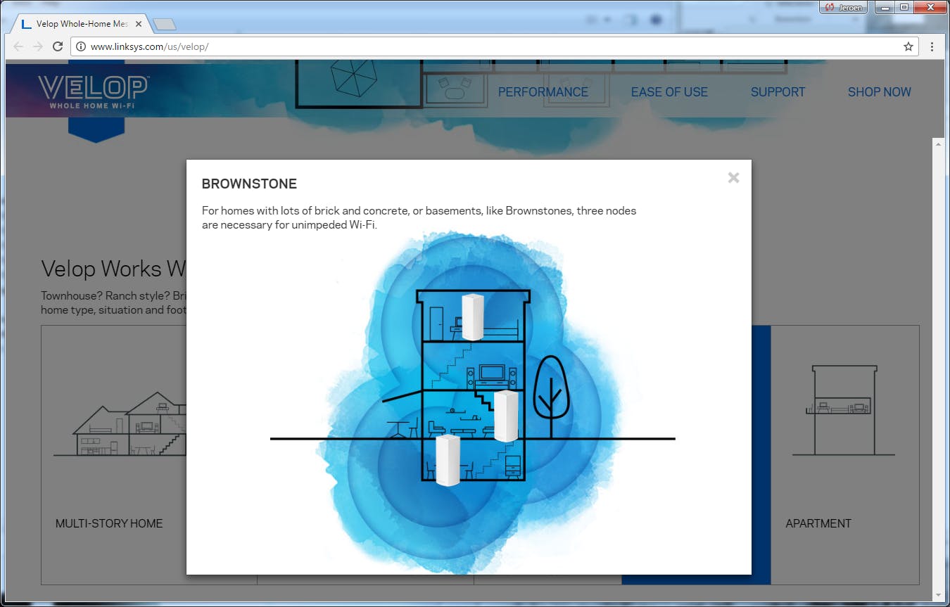 In de specificaties van wifi-apparatuur spreken netwerkfabrikanten vaak over een bereik uitgedrukt in vierkante meters. Zo zou AmpliFi HD bestaande uit drie nodes goed zijn voor 1800 vierkante meter, heeft Linksys het bij drie nodes over 557 vierkante meter en spreekt Netgear bij zijn systeem met twee nodes over 370 vierkante meter. Zet je dat af tegen een gemiddeld Nederlands rijtjeshuis van zo’n 130 vierkante meter, dan lijken alle systemen zwaar overdreven. Helaas zijn het in moderne huizen niet zozeer de vierkante meters die de dekkingsproblemen geven, maar juist de verdeling over verdiepingen die gescheiden worden door vloeren van gewapend beton. In de praktijk heb je daarom al snel op elke verdieping een wifi-accesspoint nodig.