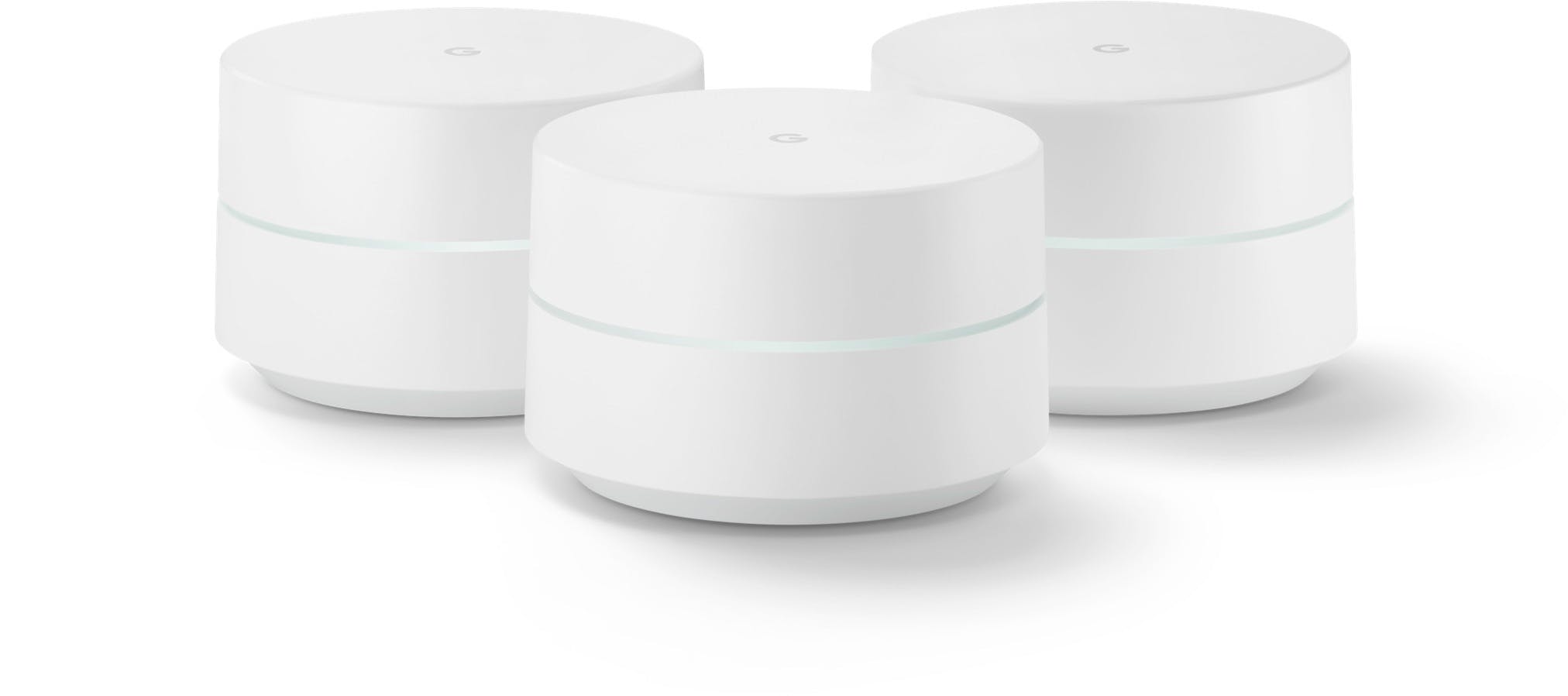 Google Wifi is een wifi-mesh-systeem dat in Nederland verkocht wordt in een set van drie wifi-accesspoints. De wifi-punten zijn erg compact: ze hebben een diameter van 10,6 cm en een hoogte van 6,9 cm. Qua formaat zijn ze het best te vergelijken met de TP-Link Deco M5. Ze zijn dus een stuk kleiner dan de ‘nodes’ van bijvoorbeeld Netgear Orbi of Linksys Velop.