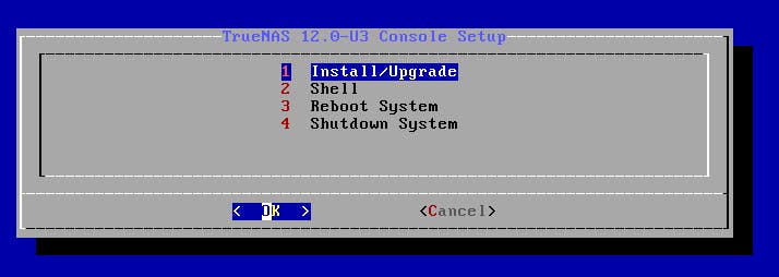 Vervolgens gaan we TrueNAS op die pc installeren. Zoals gezegd kan dat desnoods op een usb-stick (die moet je dan eveneens ingeplugd hebben), maar loopt het veel lekkerder op een harde schijf of ssd.