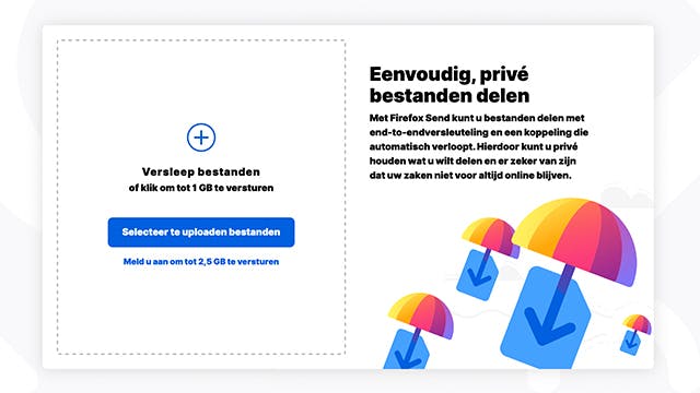 Grote bestanden versturen met Firefox Send