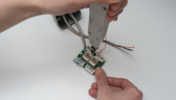 3. Sluit alle aders aan, de overbodige stukjes draad worden tijdens het aandrukken door de LSA punch down tool netjes afgesneden.