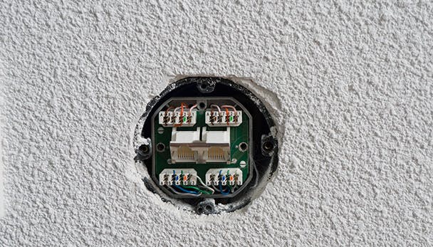 Voor het afmonteren van de netwerkkabel in een gebruiksruimte gebruik je wandcontactdozen. Deze zijn net als ander schakelmateriaal beschikbaar als inbouwvariant die in een inbouwdoos past of als opbouwvariant die je op de muur schroeft. Een complete inbouw wandcontactdoos heb je vanaf zo'n zes euro, terwijl een opbouwvariant vanaf zo'n zeven euro te koop is. Daarnaast kun je ervoor kiezen om te werken met afdekramen en centraalplaten van dezelfde fabrikant als de rest van het schakelmateriaal in je huis. Je hebt dan een binnenwerk nodig dat compatibel is met het schakelmateriaal.