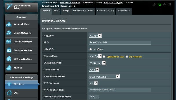Het draadloze netwerk is een erg belangrijk onderdeel van je wifi-router. Meestal vind je de instelmogelijkheden in een menu-onderdeel als Wireless of Draadloos. Kijk als eerste naar de modus waarop je wifi-netwerk draait. Een moderne router maakt gebruik van 802.11n. Deze wifi-standaard is terugwaarts compatibel is met 802.11b/g. Deze compatibiliteit zorgt wel voor wat minder goede prestaties, ook als je alleen 802.11n-apparatuur gebruikt. Standaard staat je router waarschijnlijk in een mixed modus die alle standaarden ondersteunt. Heb je geen apparatuur meer die 802.11b/g nodig heeft, stel je router dan in op alleen 802.11n. Meestal heet deze optie N of N only. Heb je nog wel 802.11g-apparatuur, kijk dan of je in ieder geval de ondersteuning voor 802.11b kunt uitschakelen door iets als G/N te kiezen.