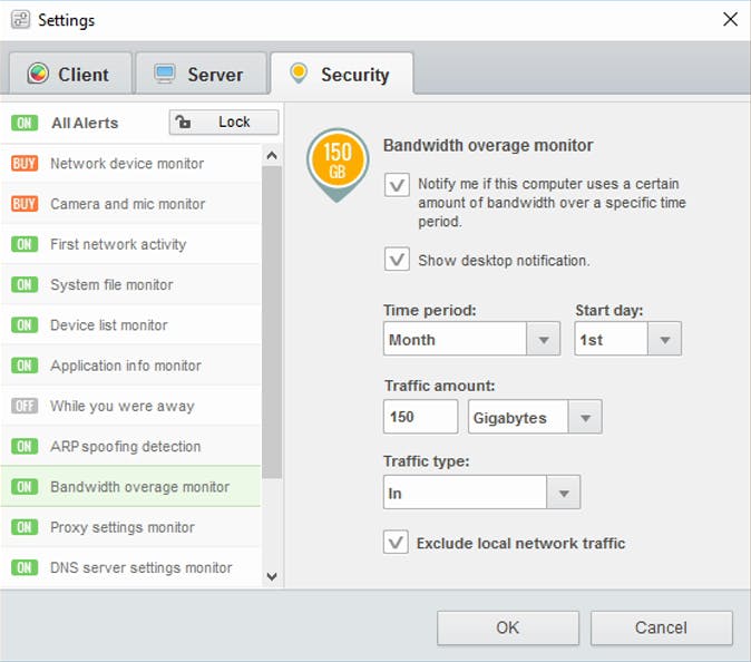 De installatie van GlassWire vergt weinig meer dan enkele keren op een knop drukken. De kans is groot dat er na de installatie meteen al een paar meldingen opduiken in een pop-upvenster nabij het Windows-systeemvak. Je krijgt hiervan een chronologisch overzicht op het tabblad Alerts van het hoofdvenster, maar via het menu kun je die ook per applicatie (Apps) of soort (Type) groeperen. Wat deze laatste betreft: via de knop Glasswire / Settings / Security / Unlock bepaal je geheel zelf welke type alarmmeldingen je te zien wilt krijgen. Het is bijvoorbeeld mogelijk je te laten waarschuwen zodra de pc binnen een zekere periode een bepaalde hoeveelheid data van een specifiek type overschrijdt.