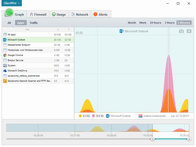 GlassWire brengt je op de hoogte van verdacht of ongewenst netwerkverkeer.