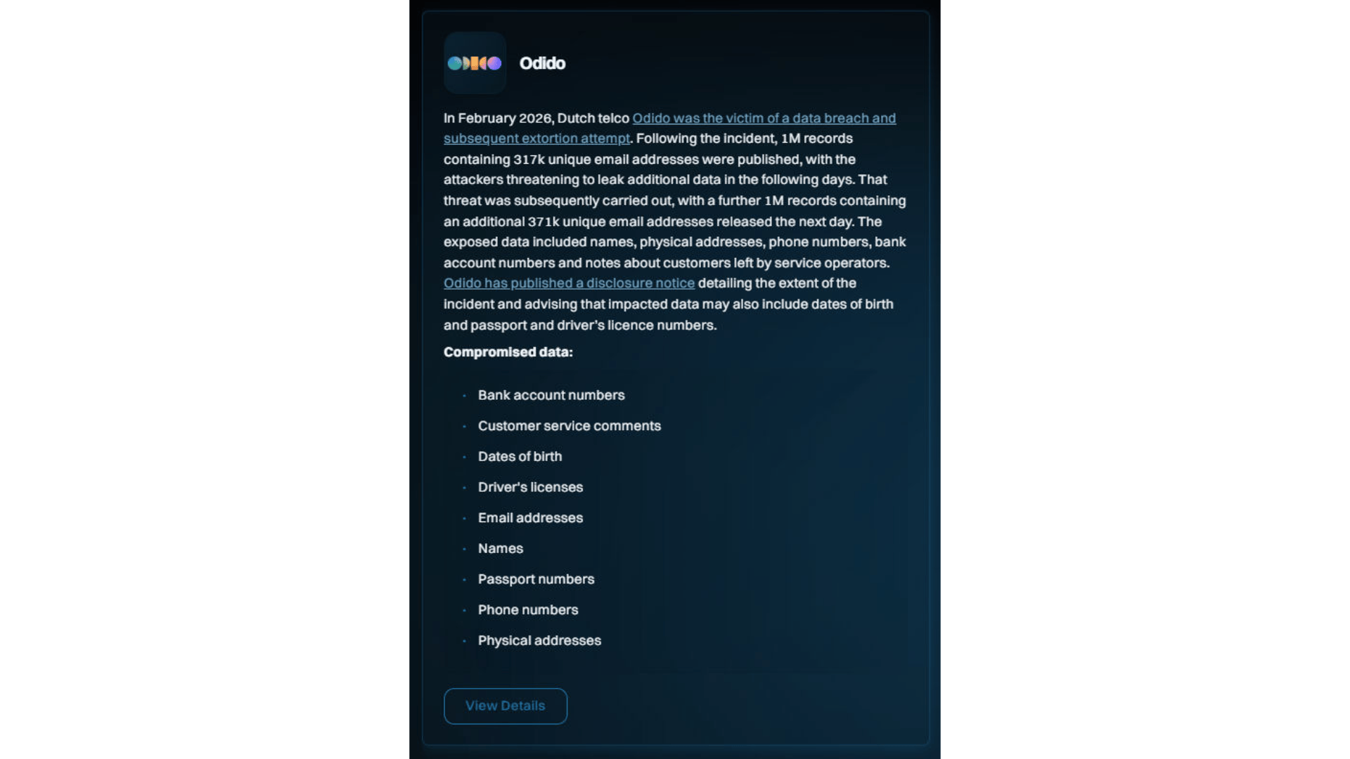 Dewebsite Have I Been Pwned heeft een groot deel van de gegevens van de Odido-hack in handen. Via de site kunnen klanten van Odido nu zelf controleren of hun gegevens voorkomen in de gelekte data. Er staan gegevens van zo'n 600.000 Odido-klanten in de eerste set van vrijgegeven data.