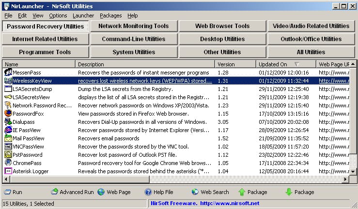 Toegegeven, met bijna driehonderd tools is de rubriek All Items misschien niet de meest aangewezen weg om snel de gewenste tool te vinden. Gelukkig zijn er hulpmiddelen aan boord. Zo kun je een tool met de rechtermuisknop aanklikken en Add to Favorites selecteren. Die belanden dan automatisch in de rubriek Favorites. Verder zijn er nog thematische rubrieken, zoals File and Disk, Web Browser, Network, Internet, Security, Audio/Video enzovoort, al dan niet opgesplitst per suite (SysInternals Suite, NirSoft Utilities en een aantal Windows-eigen tools). Ten slotte is er nog de zoekbalk waarmee je gericht op trefwoorden in de namen en beschrijvingen van de tools kunt zoeken.
