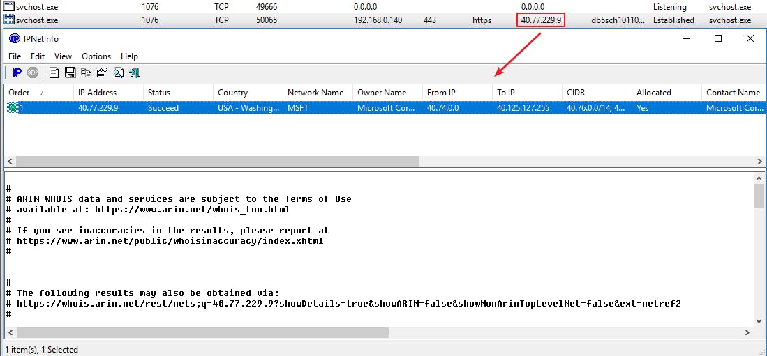 Stel, je krijgt een remote ip-adres te zien en je wilt toch achterhalen wie of wat achter dat adres zit. Ook dat kom je zo te weten! Klik het betreffende item met de rechtermuisknop aan en kies IPNetInfo in het contextmenu. Hiermee start je automatisch alweer een andere tool van NirSoft op, eentje die een zogenoemde ‘whois’-actie uitvoert. Als het goed is, kom je dan onder meer de naam, e-mailadres en telefoonnummer van de eigenaar te weten, evenals het adres en het land van herkomst.