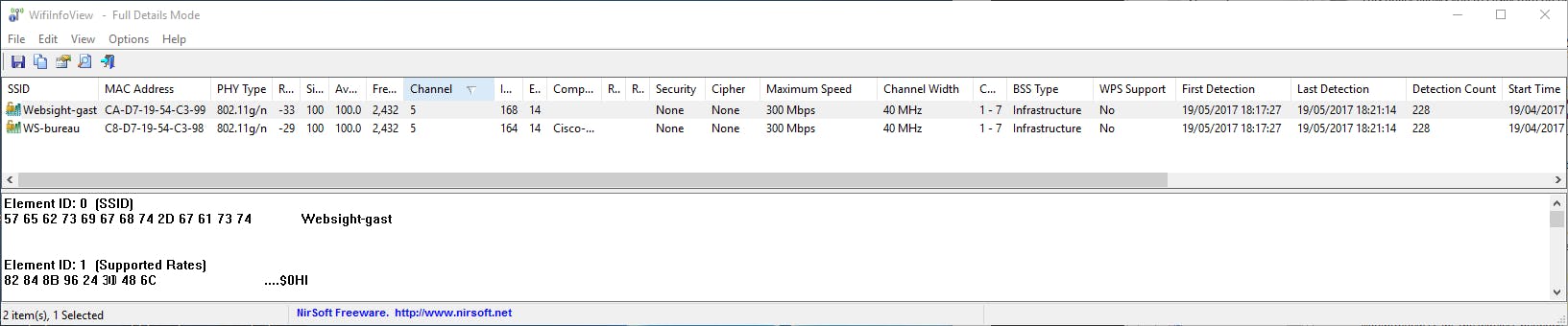 WifiInfoView kan echter ook nuttig zijn als je een ‘site survey’ wilt uitvoeren, aangezien ook de rssi-waarde (Received Signal Strength Indicator) van de gedetecteerde toegangspunten wordt meegedeeld. Wanneer je WSCC op je laptop installeert en daarmee rondwandelt terwijl WifiInfoView draait, kun je op elk moment de signaalsterkte van je eigen draadloze router aflezen en op die manier de optimale positie van die router bepalen.