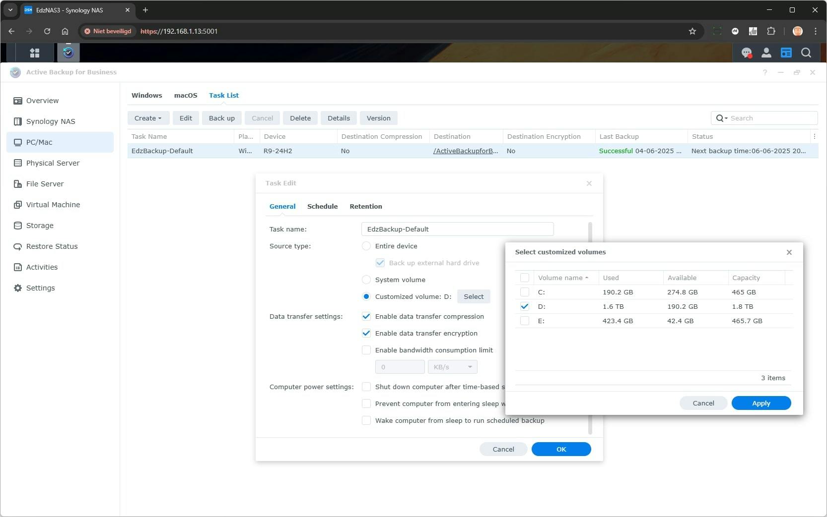 Back-up is altijd een belangrijk verkoopargument geweest van een Synology-NAS. Belangrijk is wel dat niet elke Synology-NAS dezelfde software biedt om te gebruiken. Voor de back-up van gegevens naar de NAS is er keuze uit Synology Drive, dat voor alle apparaten beschikbaar is, en Active Backup for Business, dat een Plus-, XS- of XS+-model vereist.
