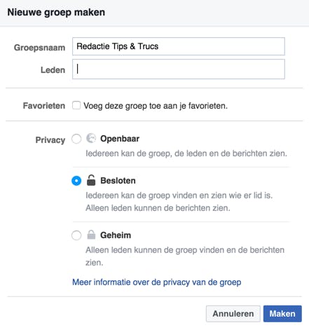 De privacy van je Facebook-groep kies je zelf: openbaar, besloten of geheim