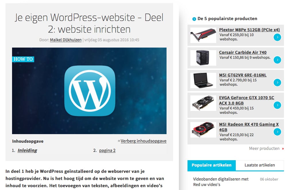 Vorig jaar hebben we in het zomernummer al een drieluik aan WordPress besteed, hier op onze website kun je nog eens nalezen hoe je je eigen website met WordPress aanmaakt en configureert. Je vindt deel 1 hier en kunt vanuit daar verder naar de volgende delen. Het is handig om alle drie de delen door te lezen voordat je verdergaat. We gaan ervan uit dat je je eigen WordPress-site hebt geconfigureerd en je een thema hebt geïnstalleerd. Ook moet je al een paar berichten en pagina’s aan je website hebben toegevoegd. Elk thema kan eigen functies aan het administratiepanel van WordPress toevoegen en daarom kan het zijn dat de schermafbeeldingen bij jou wat anders zijn en er andere functies in het Dashboard te zien zijn. We geven echter alleen algemene tips, deze zijn niet afhankelijk van een thema of bepaalde plug-in.