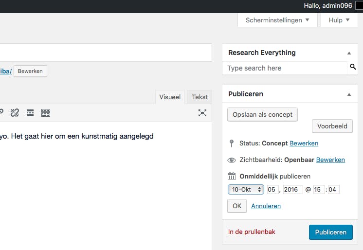 Standaard wordt een bericht gepubliceerd zodra je op de knop Publiceren klikt, maar je kunt ook berichten in de wacht zetten zodat ze op een later moment op je website worden geplaatst. Klik daarvoor op Bewerken achter Onmiddellijk publiceren. Je kunt een datum en exacte tijd aangeven en afsluiten door op OK te klikken. Als je een bericht al hebt gepubliceerd, maar tijdelijk offline wilt halen, hoef je het bericht niet te verwijderen. Klik op Bewerken achter Zichtbaarheid: Openbaar en verander het in Privé als je het alleen voor jezelf zichtbaar wilt hebben. Je kunt het bericht ook met een wachtwoord beveiligen door op Beschermd met wachtwoord te klikken. Geef een wachtwoord in en als je het bericht nu op de website wilt lezen, moet je het opgegeven wachtwoord ingeven. Dezelfde opties heb je overigens ook voor pagina’s.