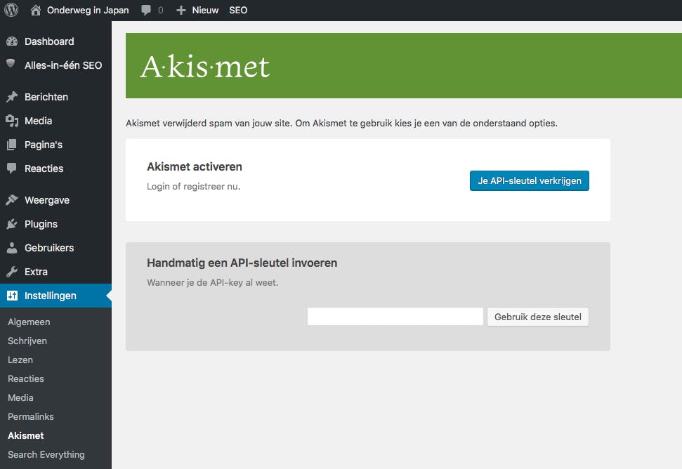 Ook voor het beheren van de reacties, is het verstandig een externe plug-in te installeren. Ga eerst naar Instellingen / Reacties en zorg ervoor dat voor Schrijvers van reacties moeten naam en e-mailadres opgeven een vinkje staat. Een extra zekerheid kan zijn om ook een vinkje voor Gebruikers moeten ingelogd zijn om te kunnen reageren te zetten, al moet je dan wel een thema hebben geïnstalleerd dat het aanmelden van gebruikers ondersteunt. Bij Plugins / Geïnstalleerde plugins zie je de plug-in Akismet staan. Deze is standaard niet geactiveerd, maar dit is wel een goed idee als je reacties wilt checken op spam. Klik op Activeren en vervolgens op Akismet-account activeren.