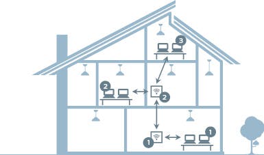 Een mesh-netwerk is een wifi-systeem waarbij meerdere wifi-toegangspunten met elkaar verbonden zijn om samen één groot en stabiel draadloos netwerk te vormen. Het voordeel van zo'n mesh-netwerk is dat het wifi-bereik veel groter is, omdat de verschillende toegangspunten elkaars signaal versterken. Apparaten die verbonden zijn met het mesh-netwerk schakelen automatisch over naar de sterkste wifi-verbinding van het dichtstbijzijnde toegangspunt.